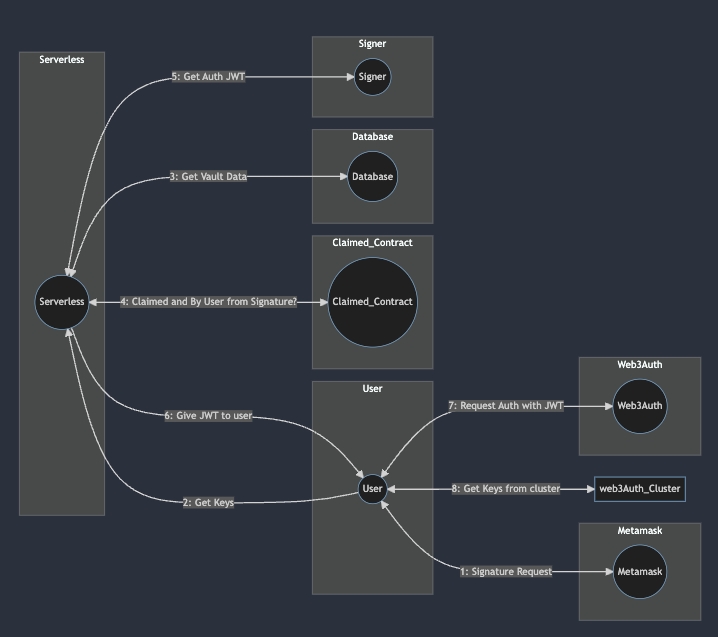 Claimed and By User from Signature?: The Serverless functions check with the Claimed_Contract if the vault has been claimed by the user corresponding to the provided signature.
